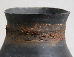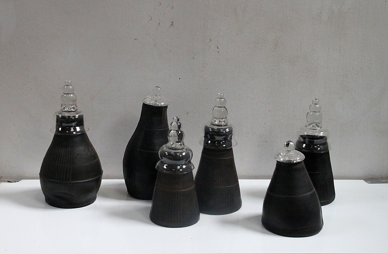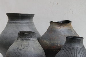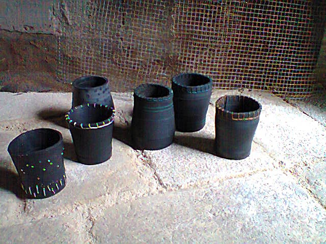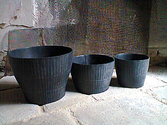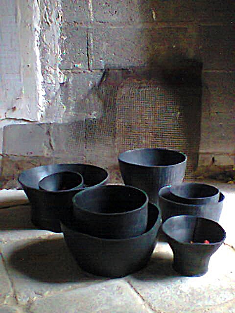 Poteries magdaléniennes accueil bagues colliers tourbillon vert médaillons accessoires poteries Le galbe d'origine et les motifs de surface caractéristiques de chaque chambre à aire invitent logiquement à une nouvelle mise en volume, d'où l'envie d'inventer des "poteries", utilitaires ou non. En clin d'oeil aux vestiges archéologiques datant de la période du Magdalénien, j'ai regroupé certains de mes pots dans une rubrique intitulée vestiges magdaléniens. La couleur, l'aspect de surface, les motifs... le parallèle me semblait tellement surprenant et évident... ! |